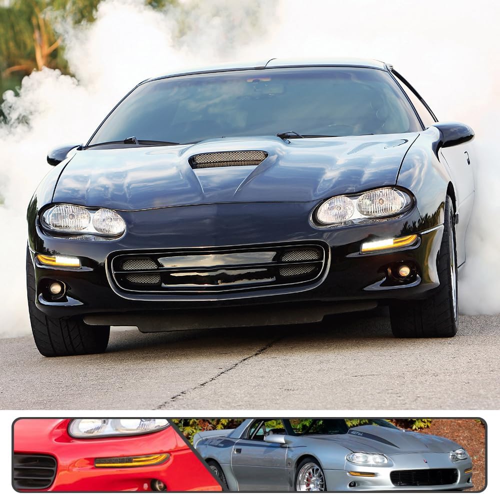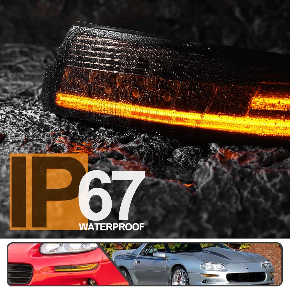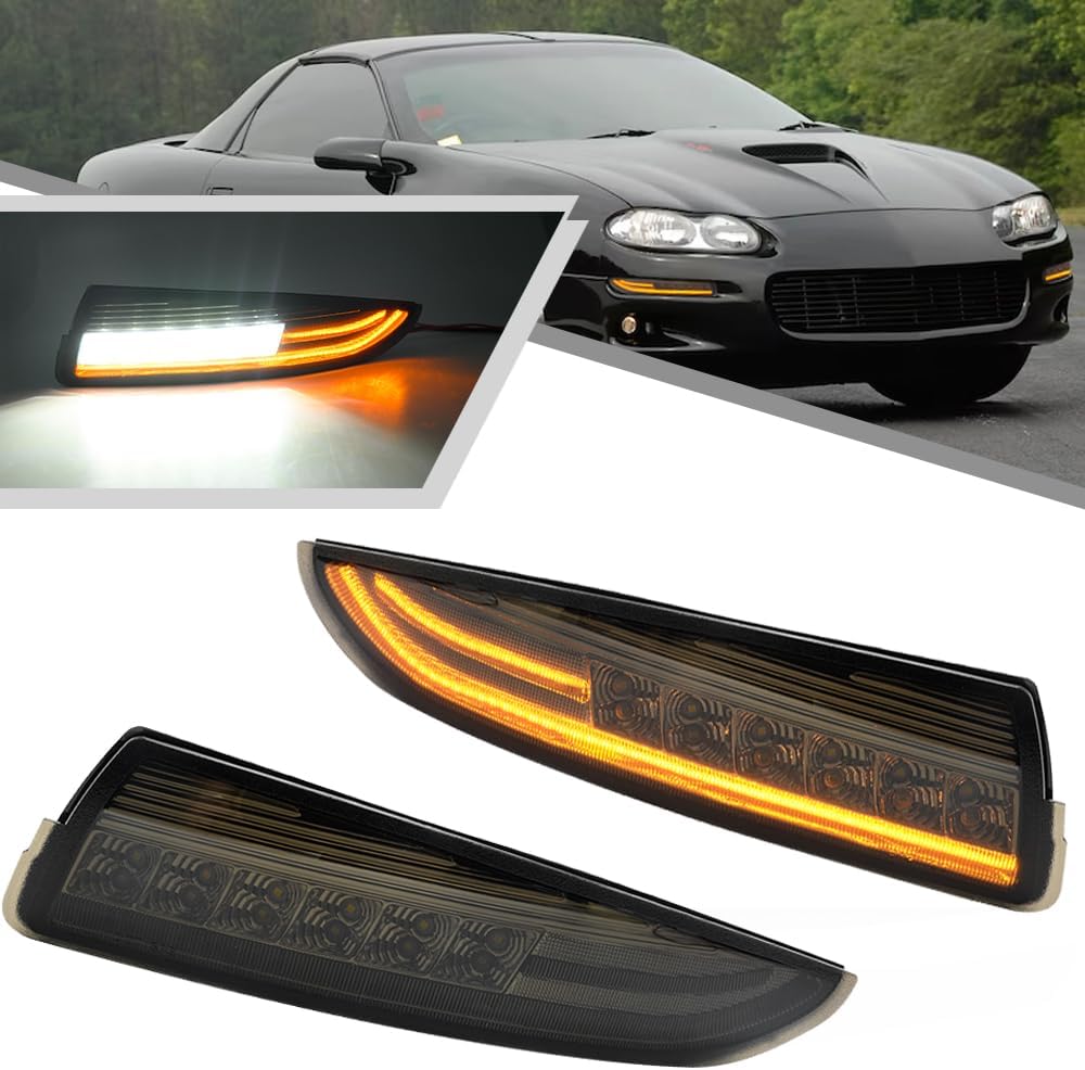 1993-2002 Camaro "Smoked LED DRL/Laser Sequential" (Smoked Lense and Chrome Housing, Xenon White LED Parking/Driving & Full Amber LED Blinker) Turn Signals (PAIR)