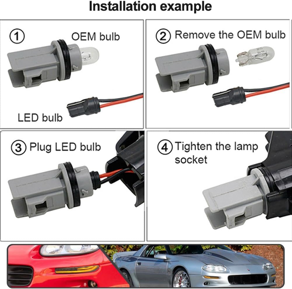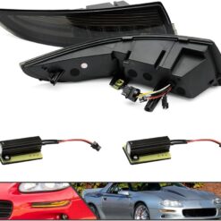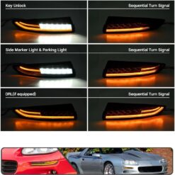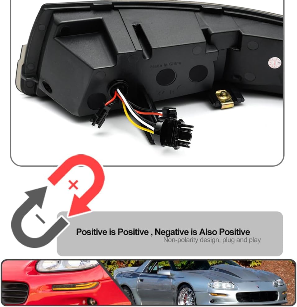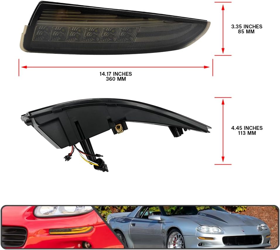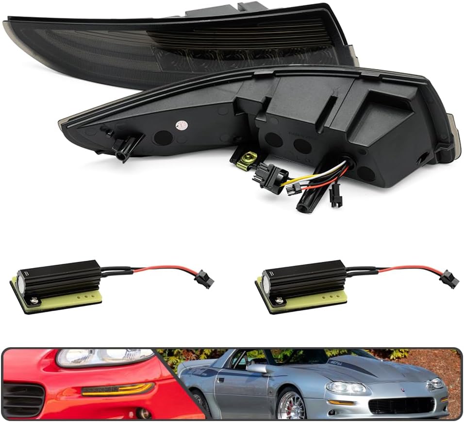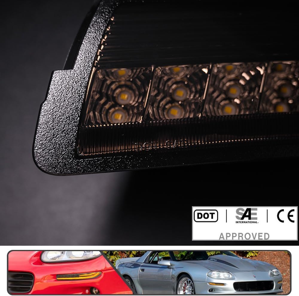 1993-2002 Camaro “Smoked LED DRL/Laser Sequential” (Smoked Lense and Chrome Housing, Xenon White LED Parking/Driving & Full Amber LED Blinker) Turn Signals (PAIR)